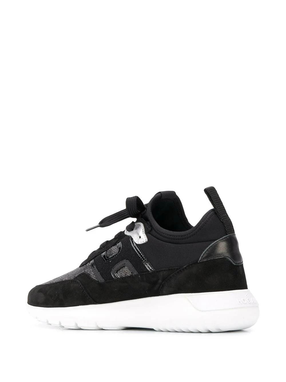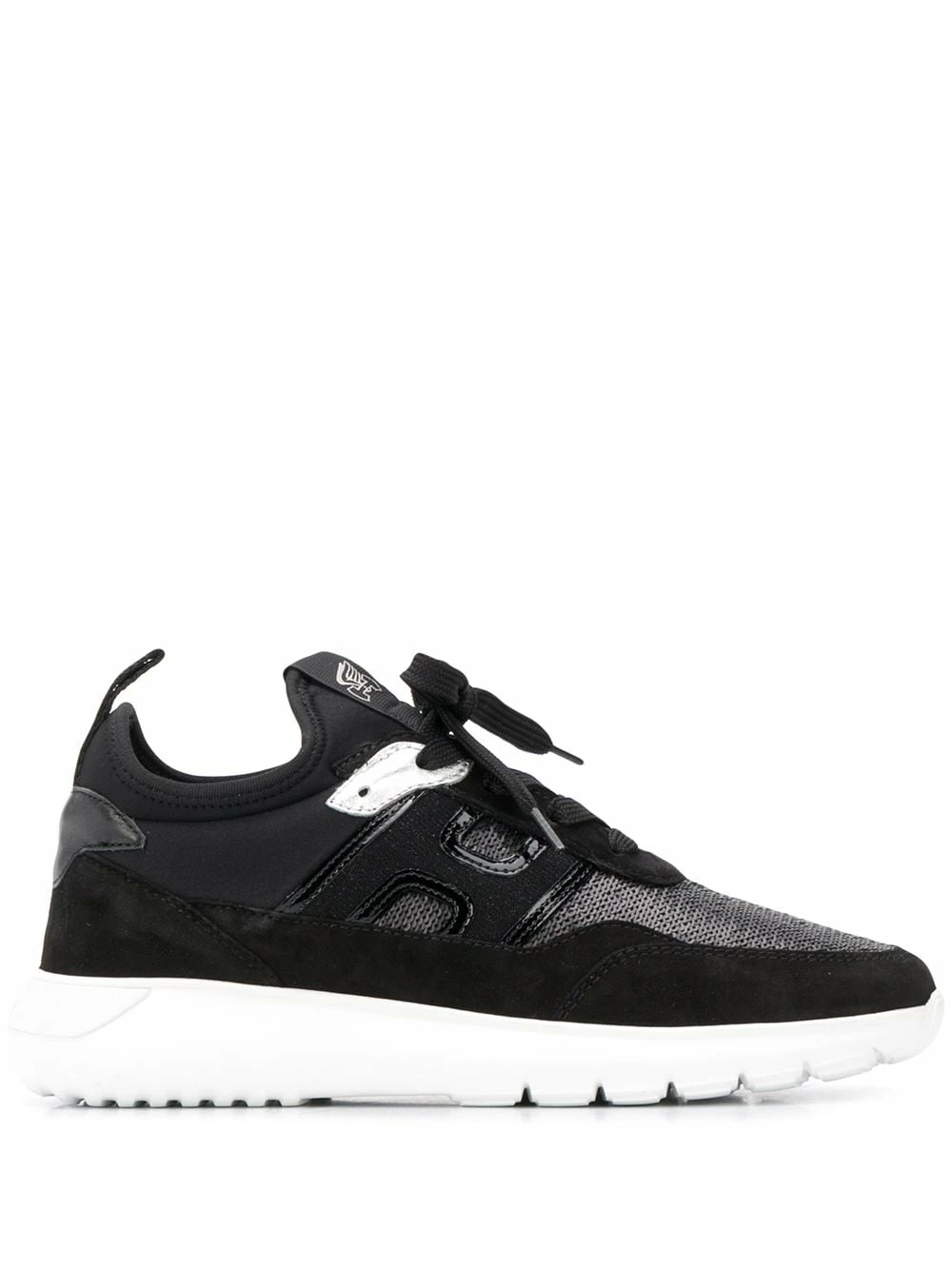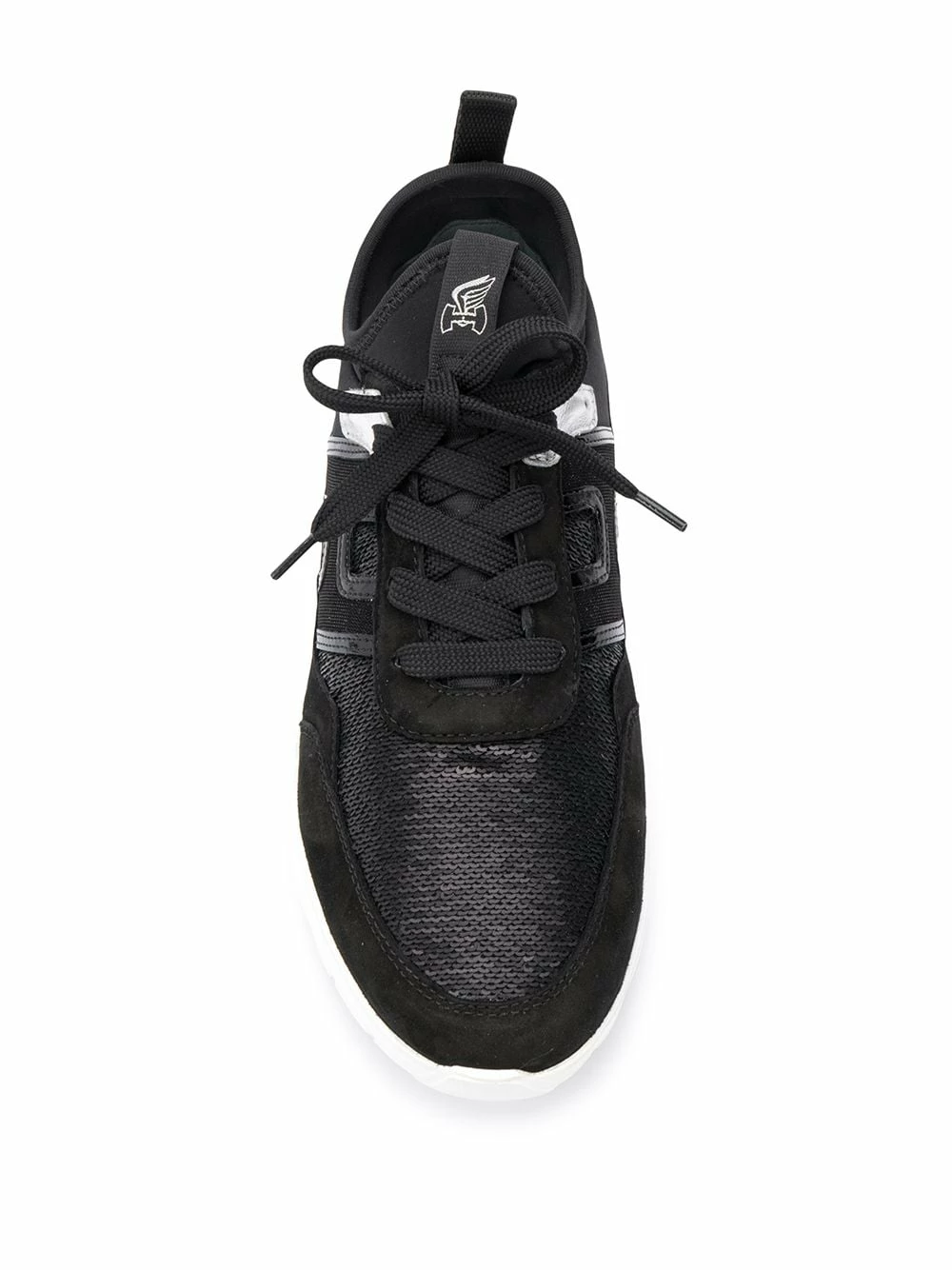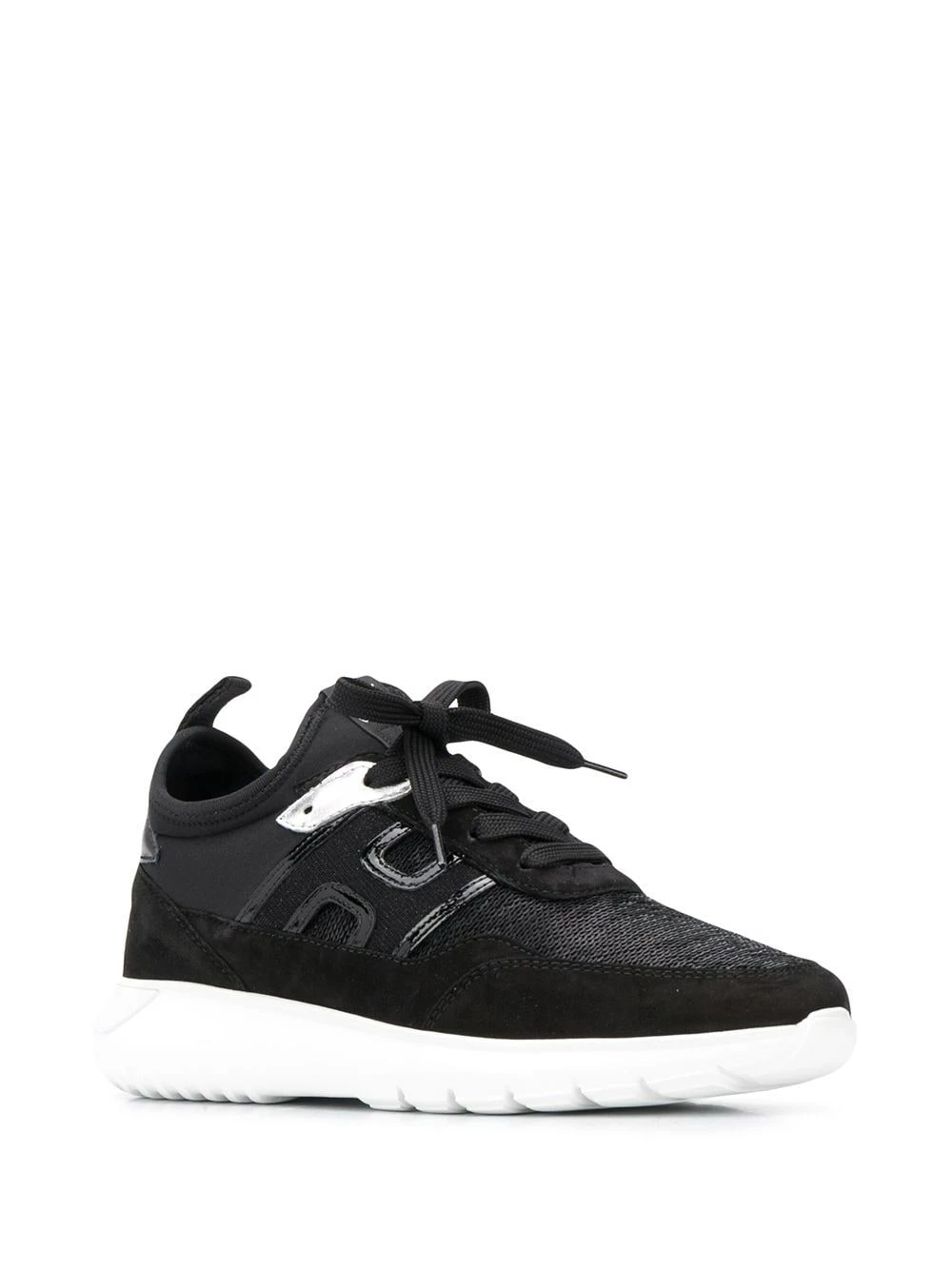 Empiècements contrastants, bout rond, fermeture à lacer sur le devant, semelle crantée en caoutchouc. Couleur : noir. Matière : daim.