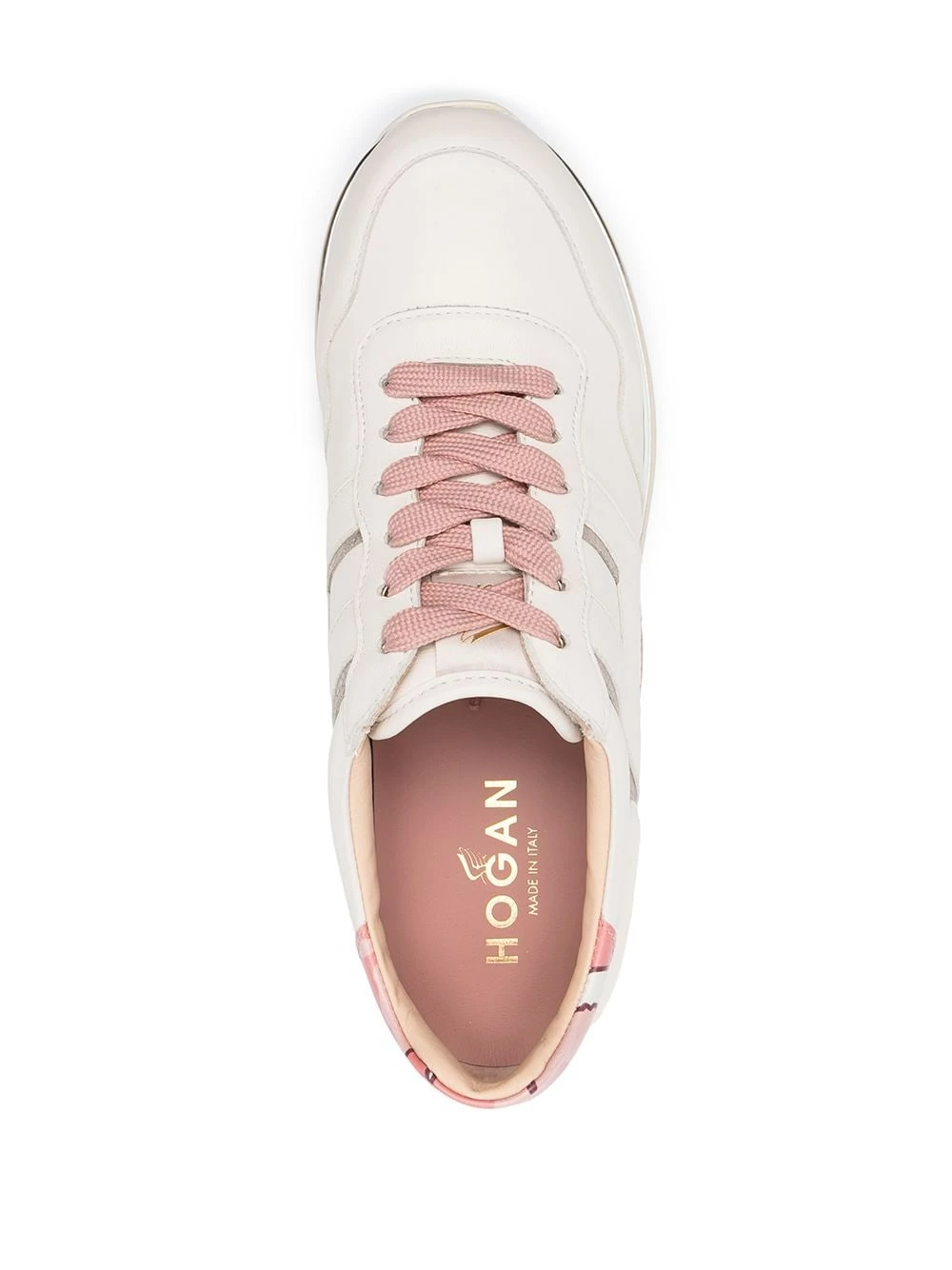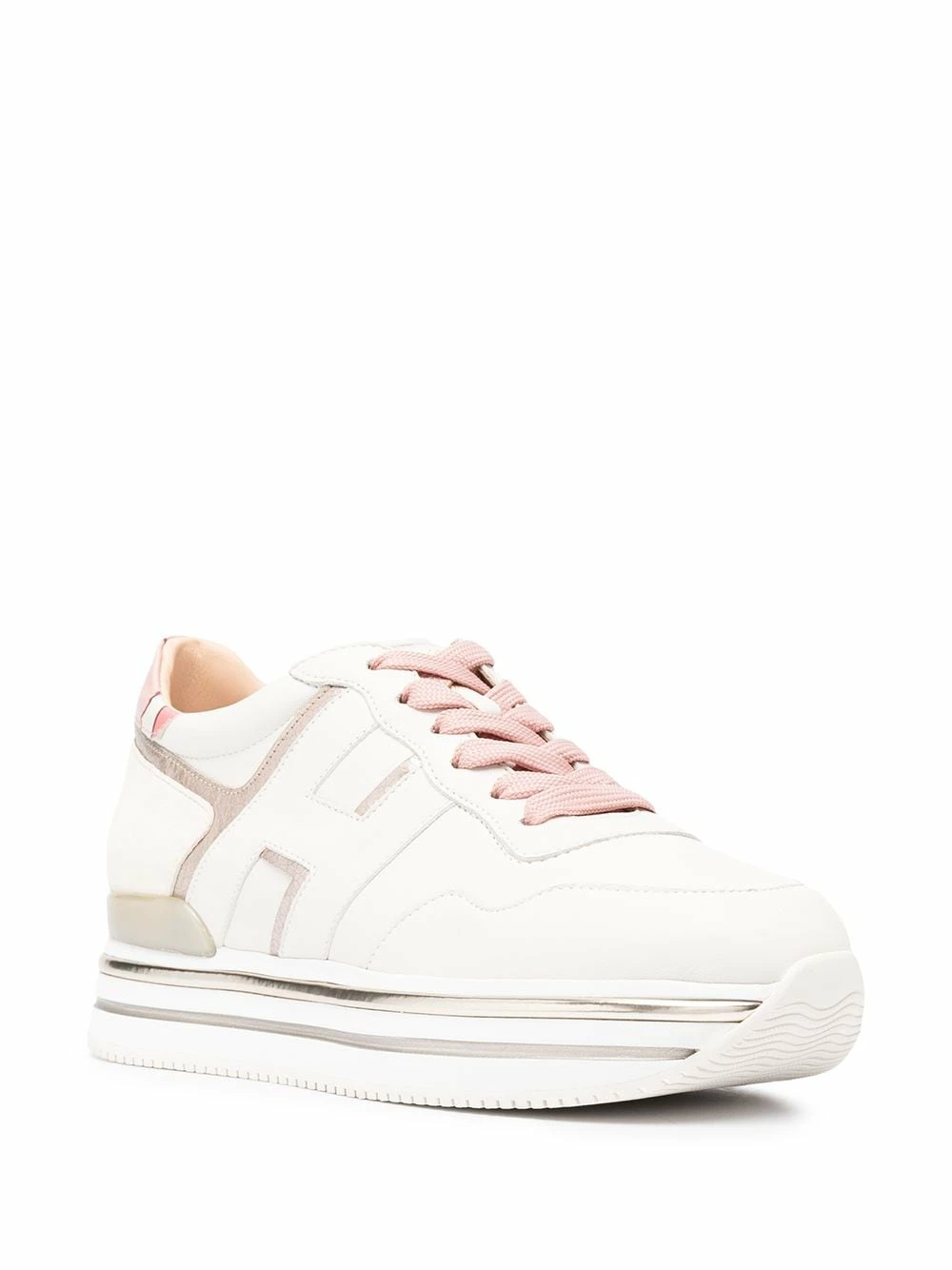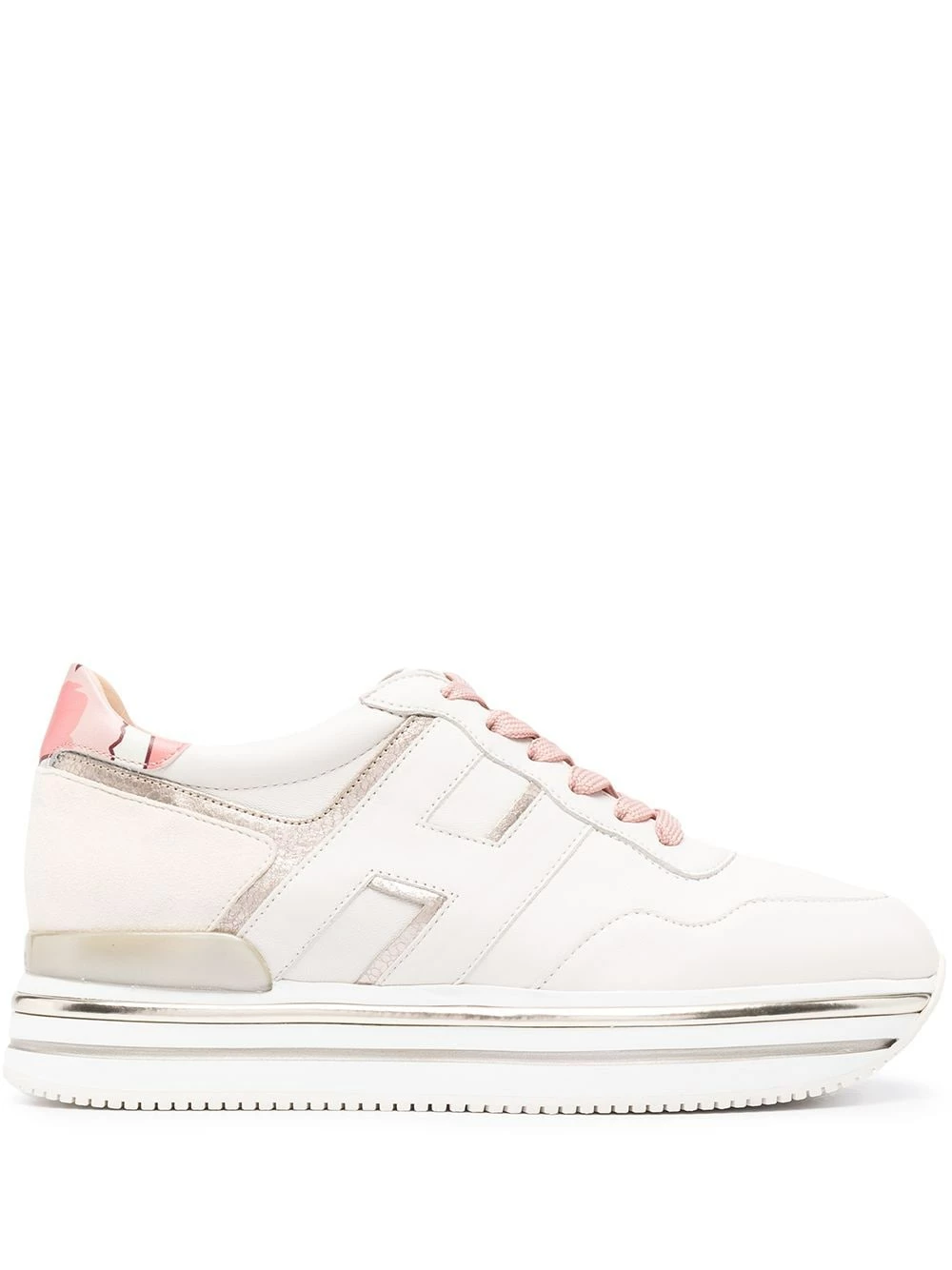 Semelle à plateforme, fermeture à lacer sur le devant, patch logo sur le côté, design à empiècements. Couleur : Tons neutres. Matière : cuir.