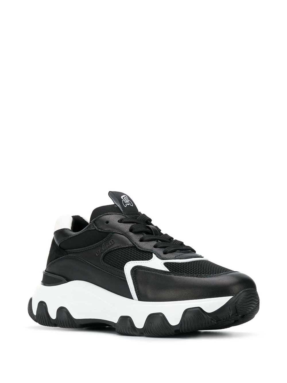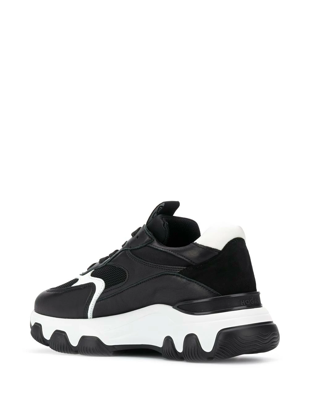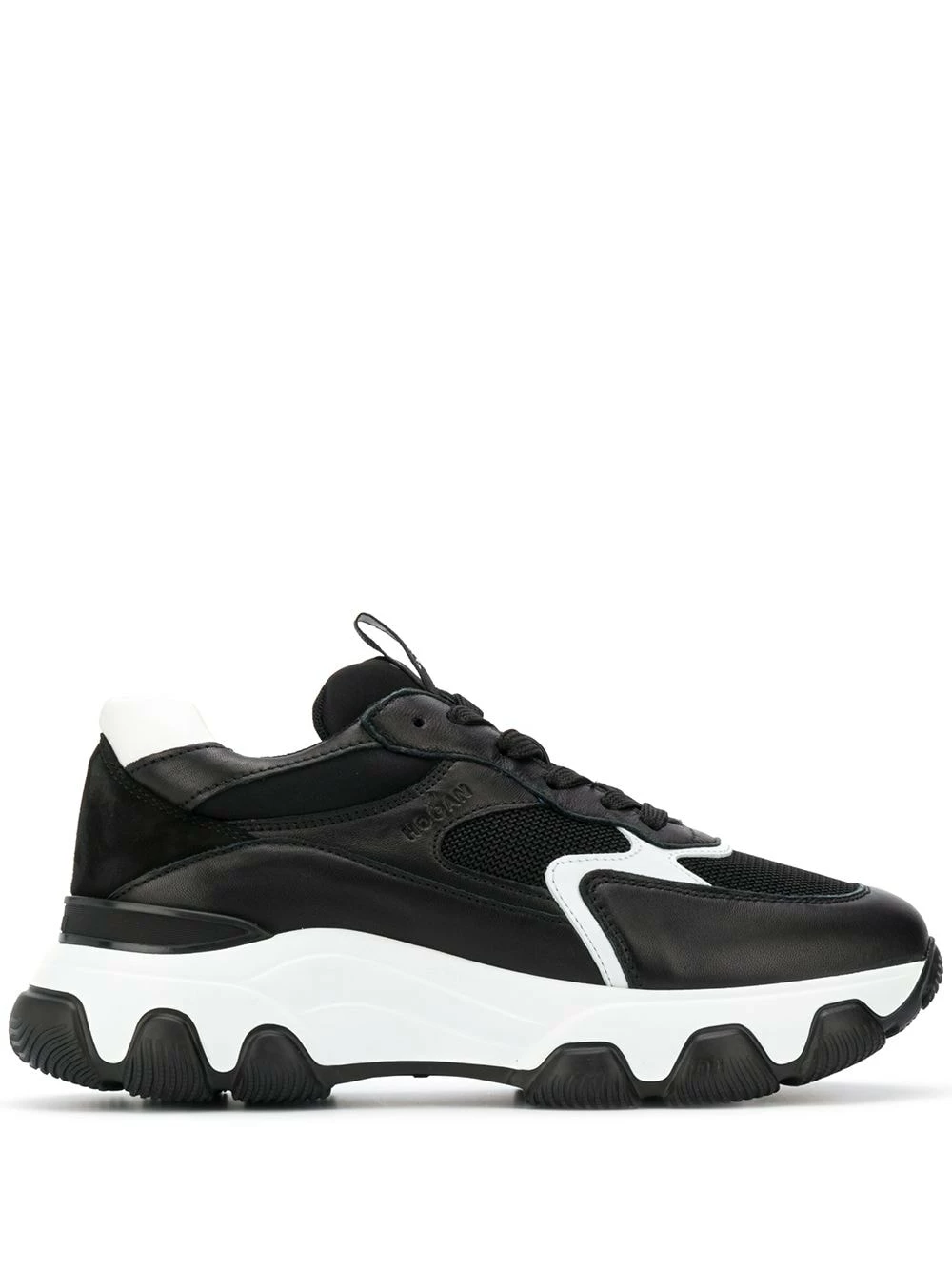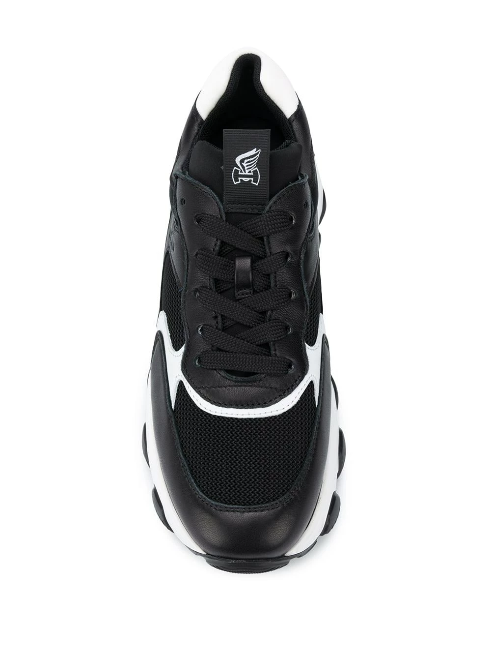 Fermeture à lacer sur le devant, semelle épaisse en caoutchouc, détail en résille, logo embossé sur le côté.