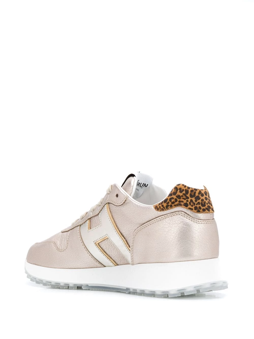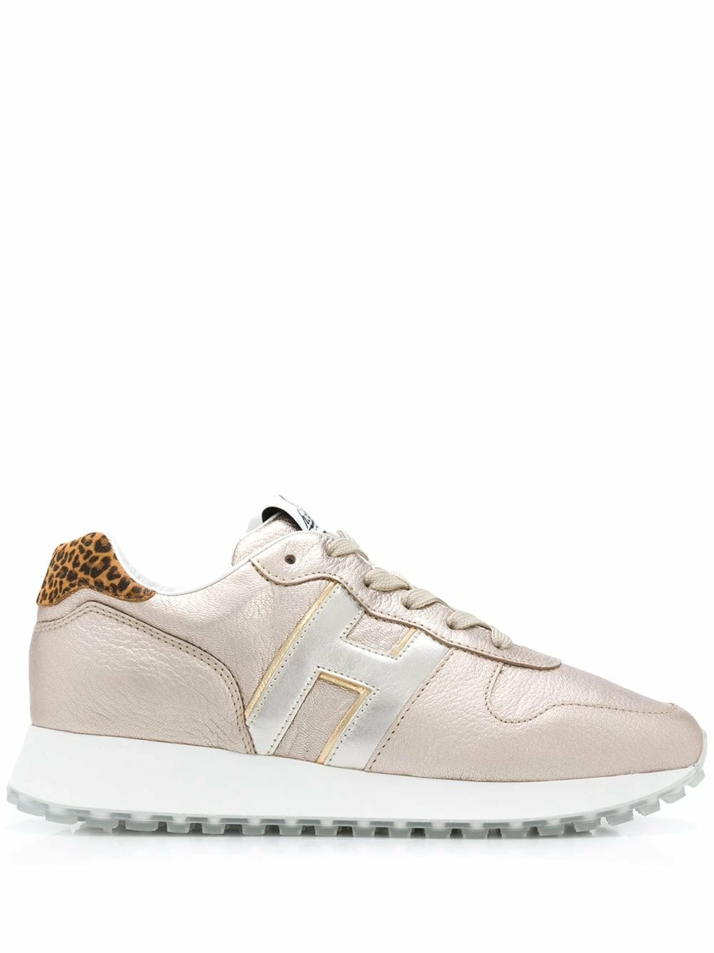 Baskets H383 en cuir Hogan avec effet métallisé, empiècements contrastants, bout rond, fermeture à lacer sur le devant, patch logo sur la languette, contrefort contrastant et semelle crantée en caoutchouc.