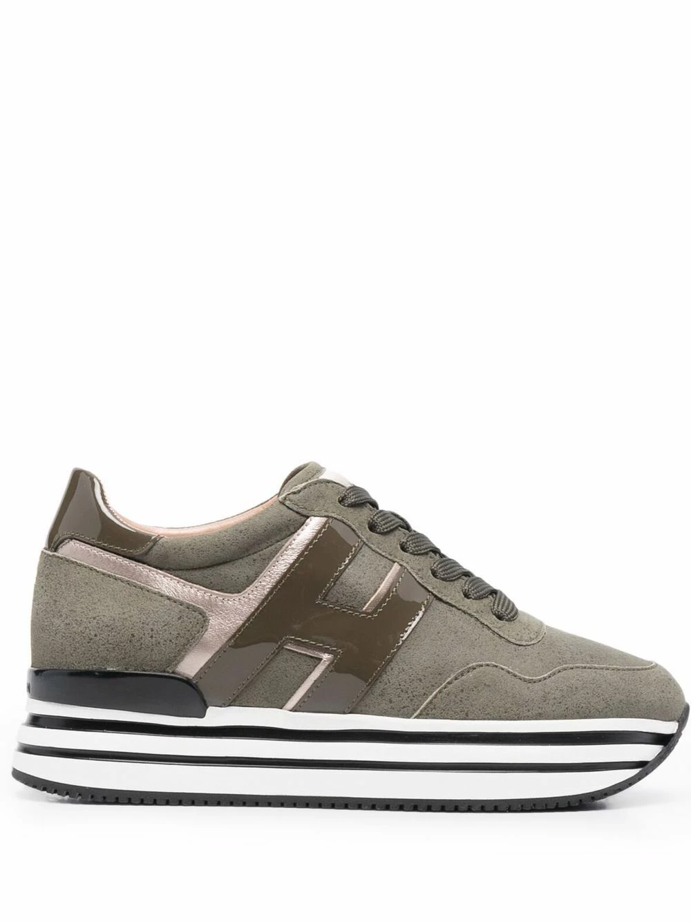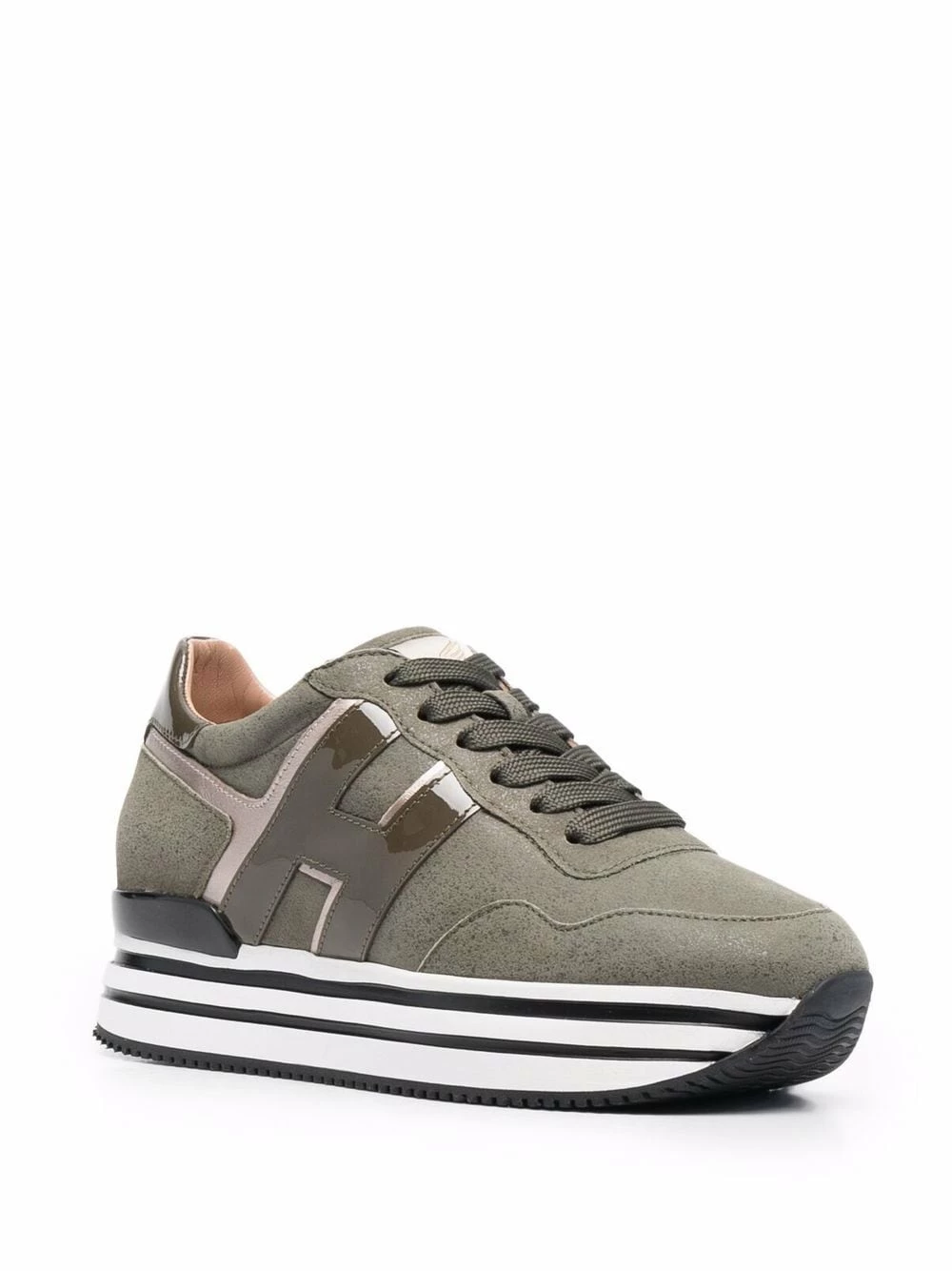 Finitions brillantes, patch logo sur le côté, languette à patch logo, bout rond, fermeture à lacer sur le devant, semelle intérieure à logo, semelle à plateforme. Matière : cuir.