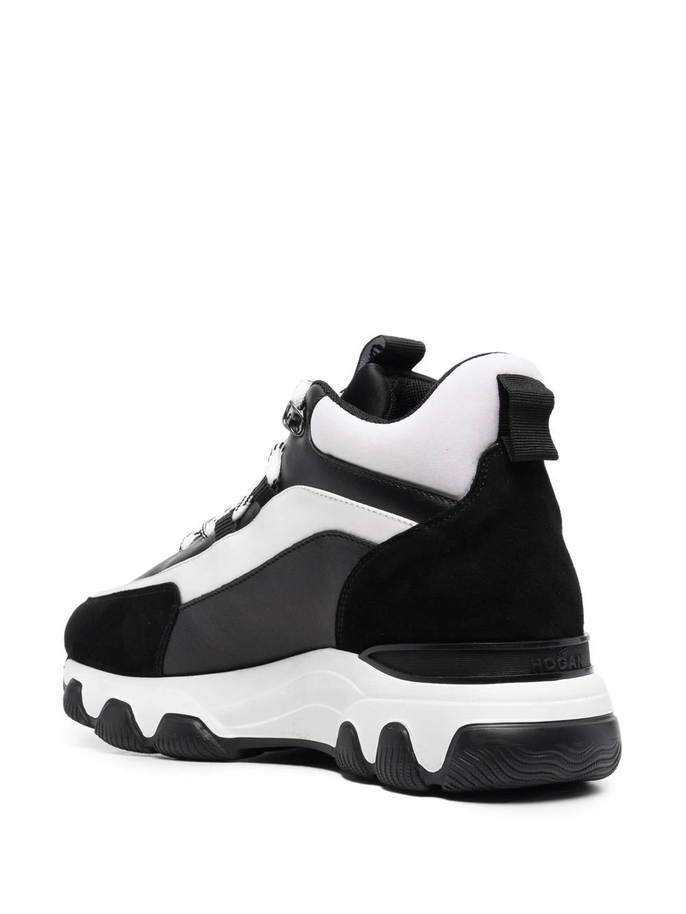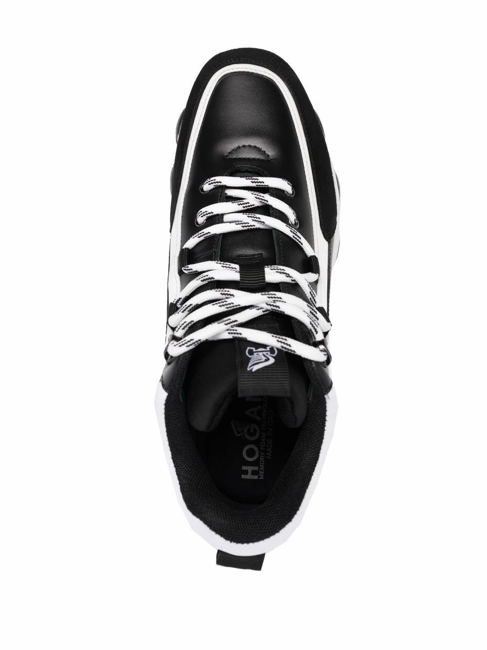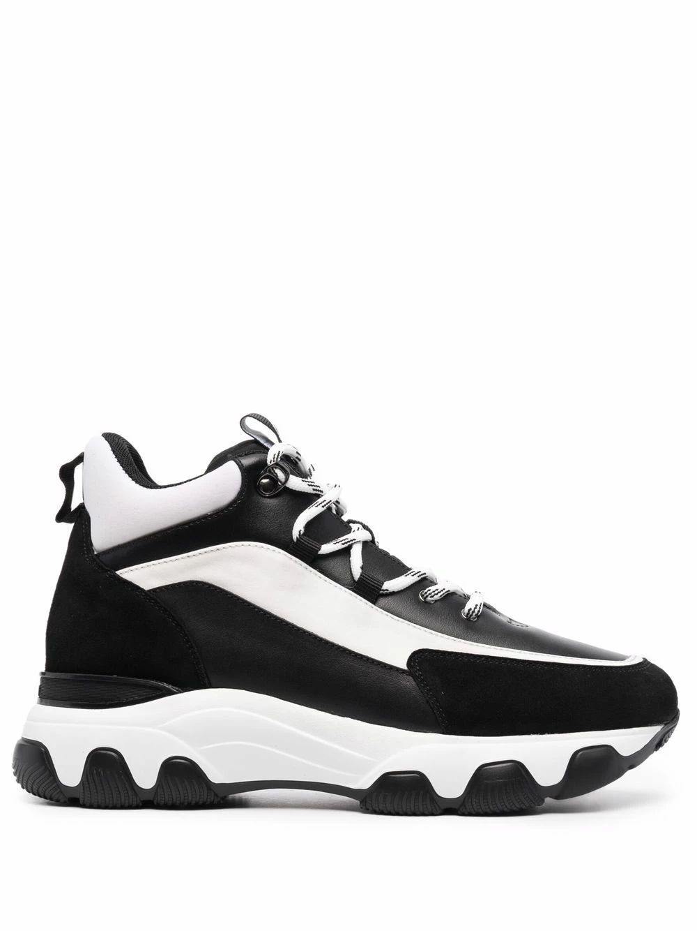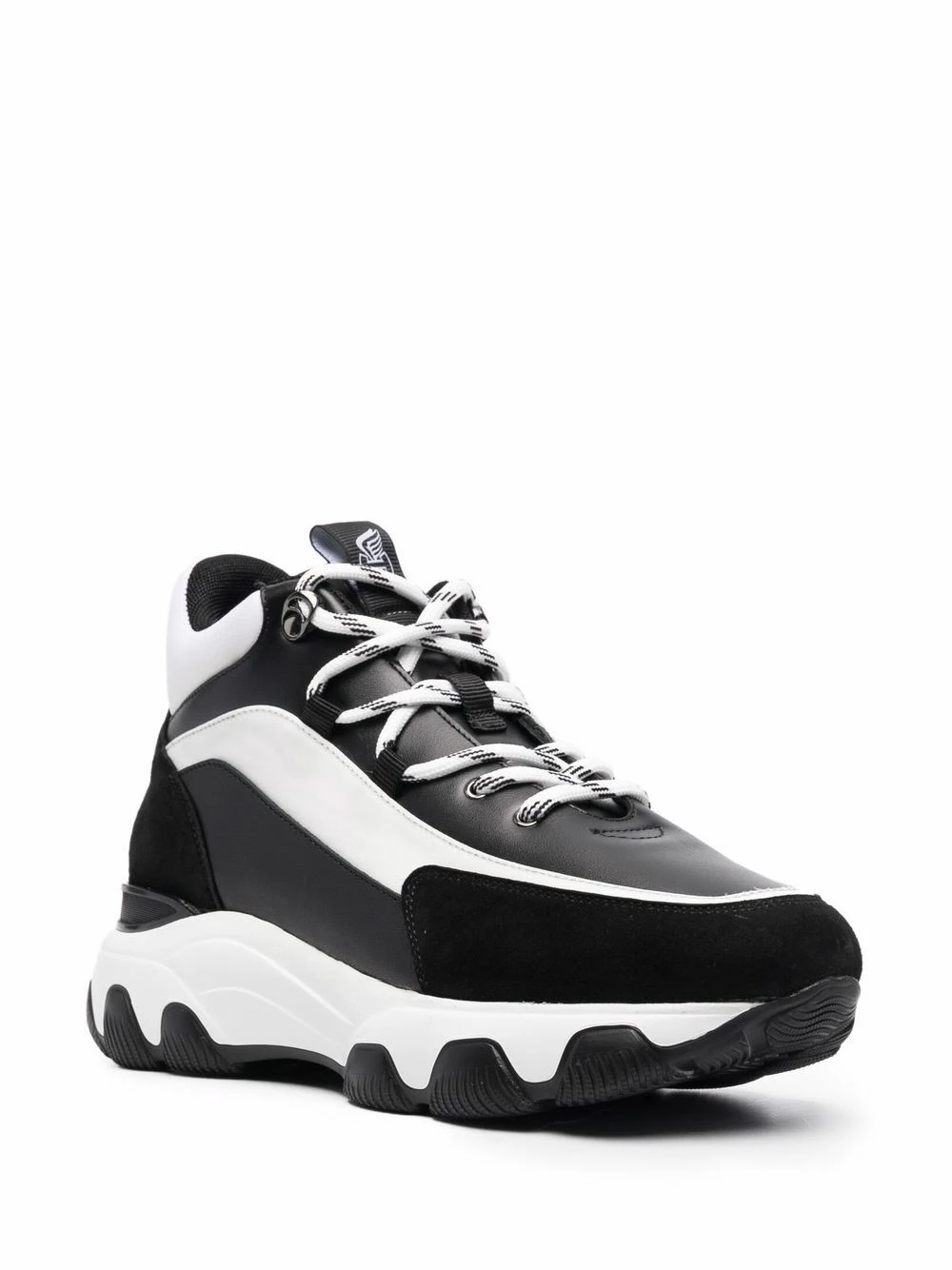 Modèle bicolore, semelle épaisse en caoutchouc, languette à patch logo, bout rond, fermeture à lacer sur le devant, semelle intérieure à logo.