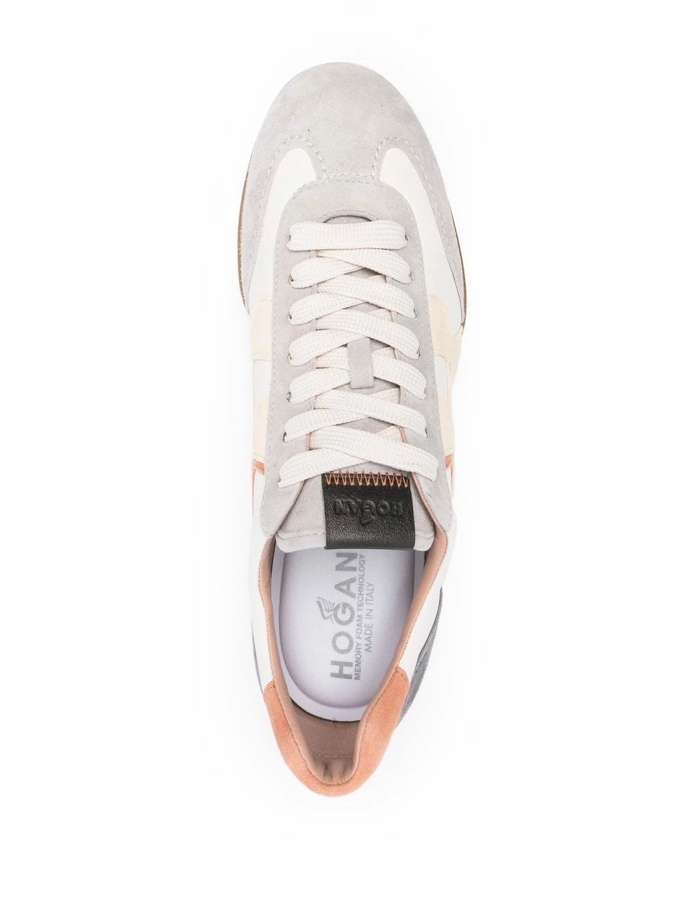 Design à empiècements, languette à patch logo, bout rond, fermeture à lacer sur le devant, semelle intérieure en mousse à mémoire de forme, semelle intérieure à logo, semelle plate en caoutchouc.