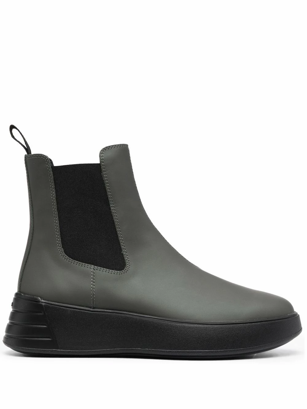 Bout rond, design à enfiler, languette d’enfilage au talon, empiècements élastiqués sur les côtés, semelle épaisse en caoutchouc. Couleur : vert. Matière : cuir.