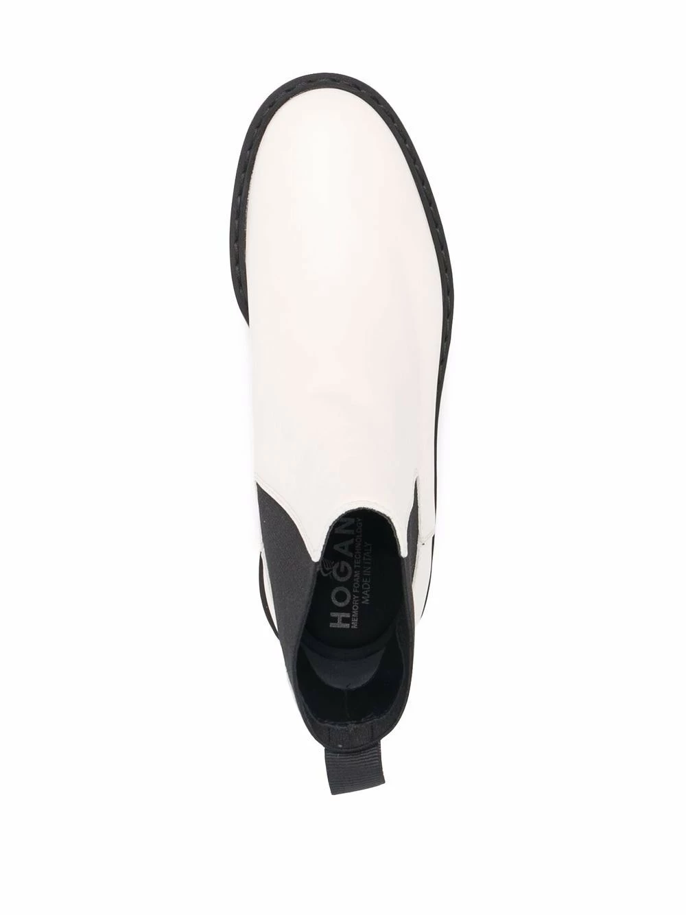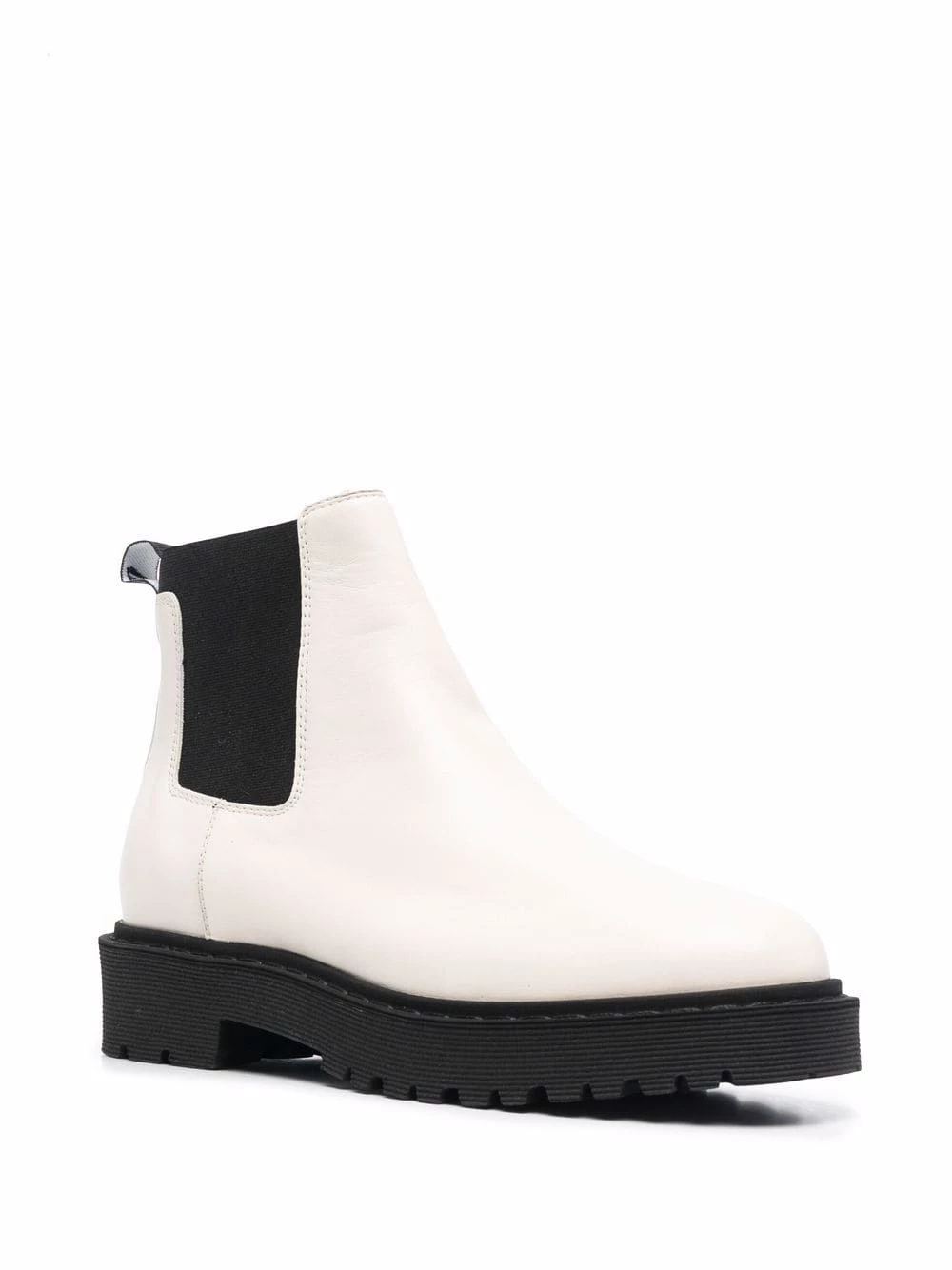 Semelle épaisse en caoutchouc, coutures contrastantes, languette d’enfilage à logo au talon, hauteur cheville, design à enfiler. Couleur : blanc. Matière : cuir.
