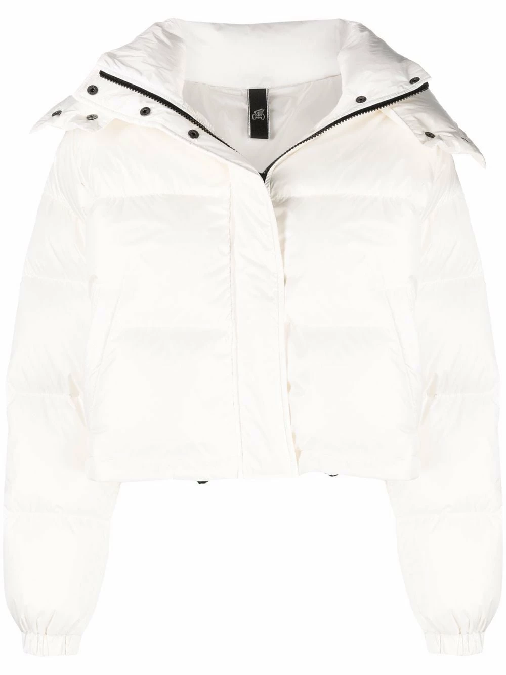 Structure légère, hydrofuge, garnissage en duvet, design matelassé, capuche détachable, fermeture dissimulée sur le devant, poches latérales fendues, manches longues, lien de resserrage. Couleur : blanc.