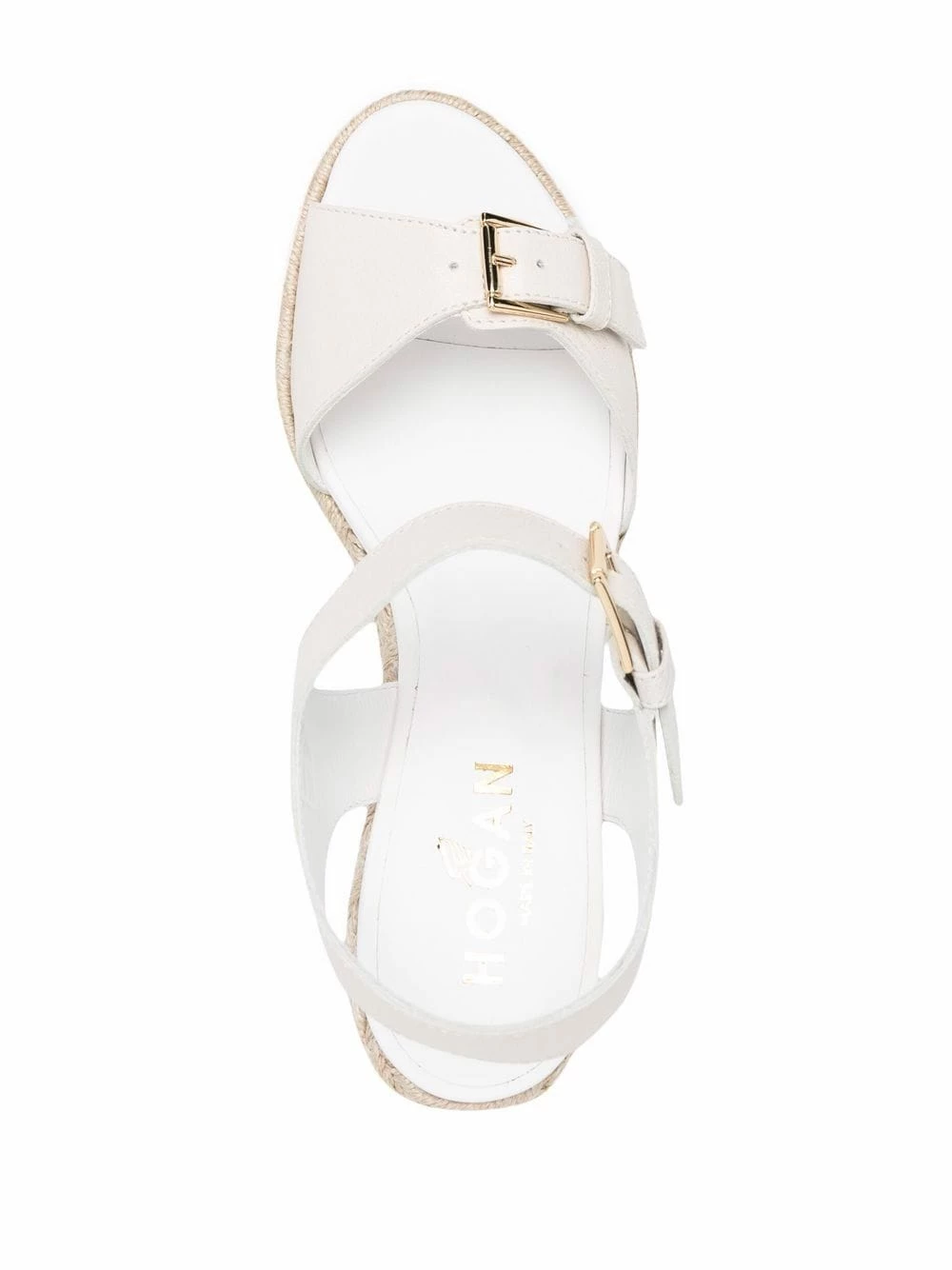 Finitions en métal doré, fermeture à boucle, bout ouvert, semelle à plateforme. Matière : cuir.
