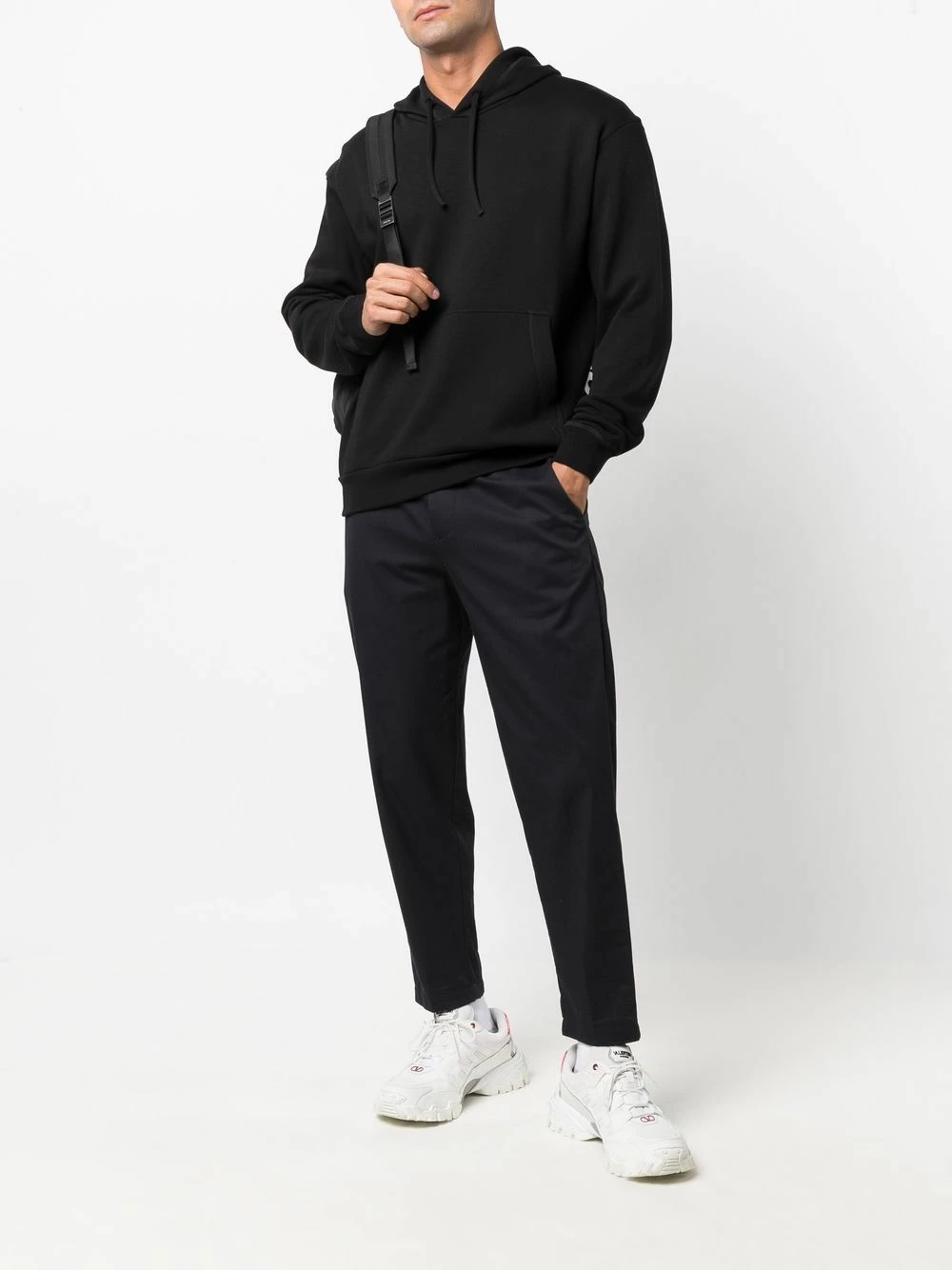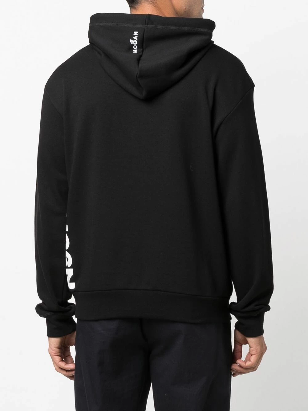 Logo imprimé sur le côté, logo imprimé à l’arrière, capuche à lien de resserrage, manches longues, ourlet droit. Couleur : noir. Matière : coton.