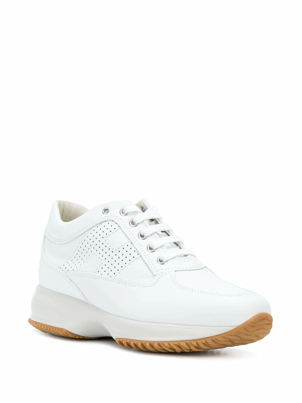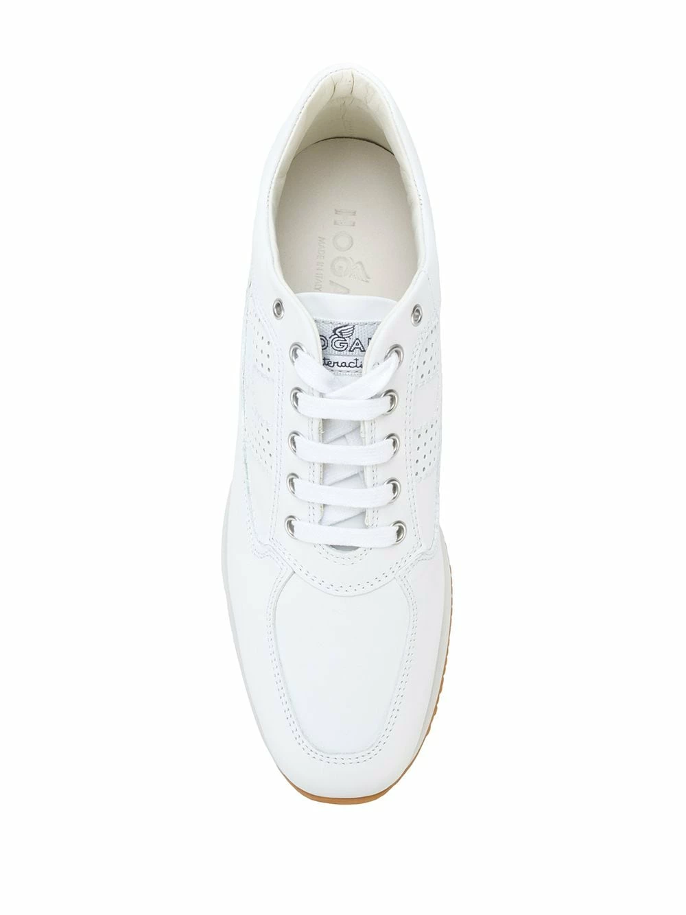 Baskets Interactive Hogan avec fermeture à lacer sur le devant, patch logo sur la languette et semelle crantée en caoutchouc. Couleur : blanc.