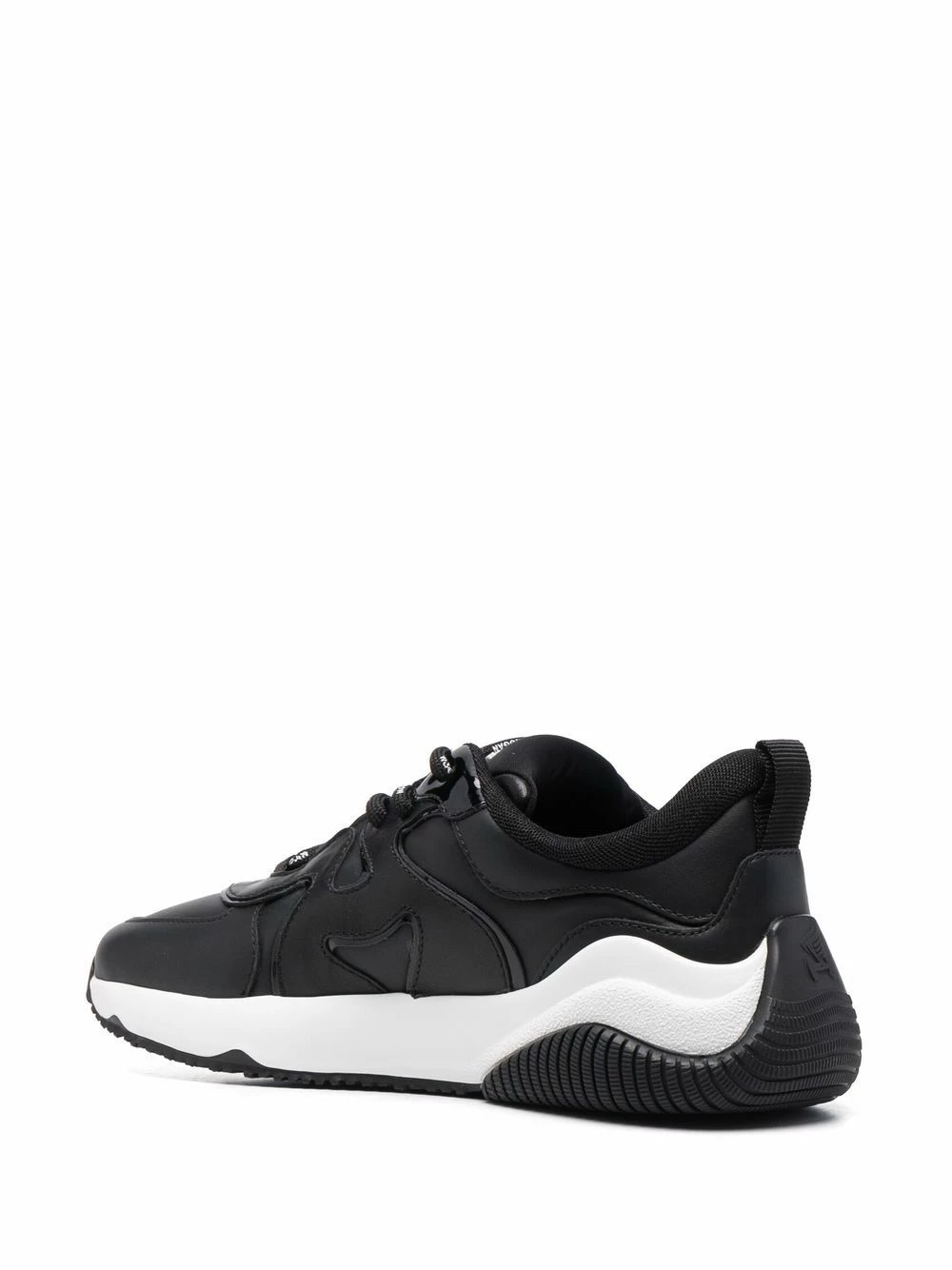 Modèle bicolore, bout rond, fermeture à lacer sur le devant, patch poitrine à logo, semelle épaisse en caoutchouc. Couleur : noir. Matière : cuir.