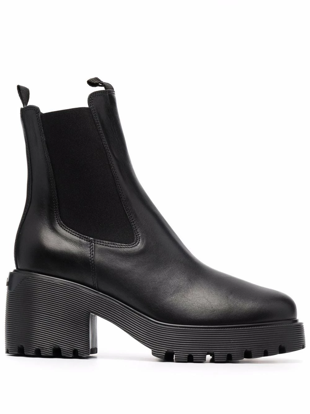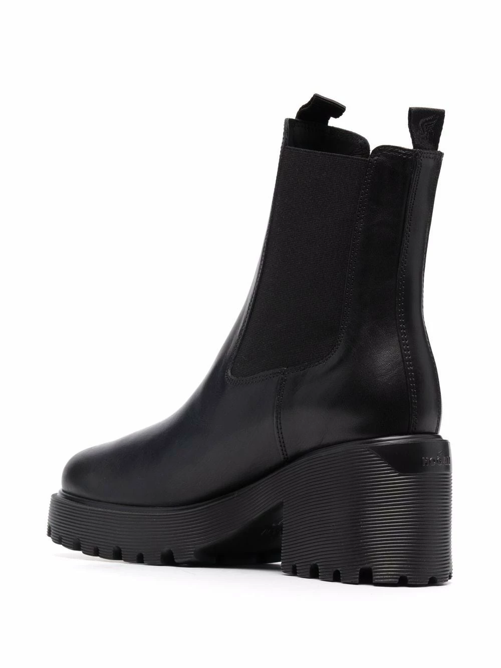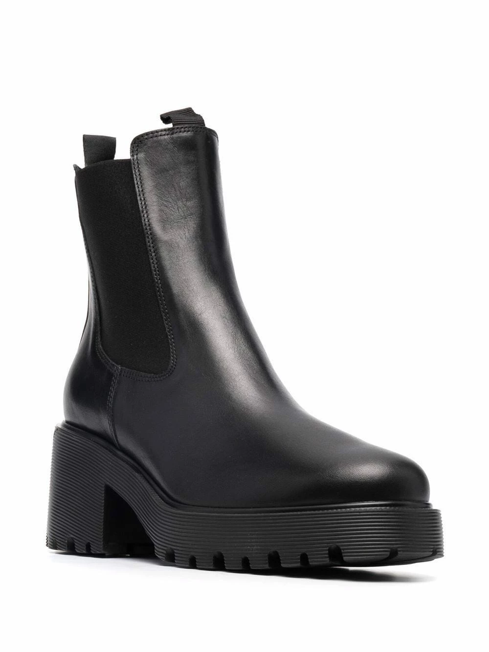 Talon mi-haut épais, bout rond, hauteur cheville. Couleur : noir.