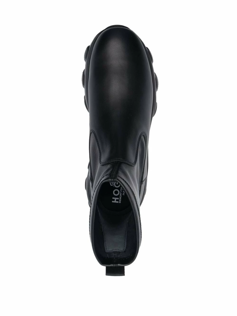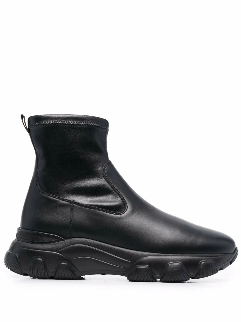 Design ton sur ton, bout rond, cheville style chaussette, semelle intérieure à logo, languette d’enfilage au talon, semelle épaisse. Matière : cuir.