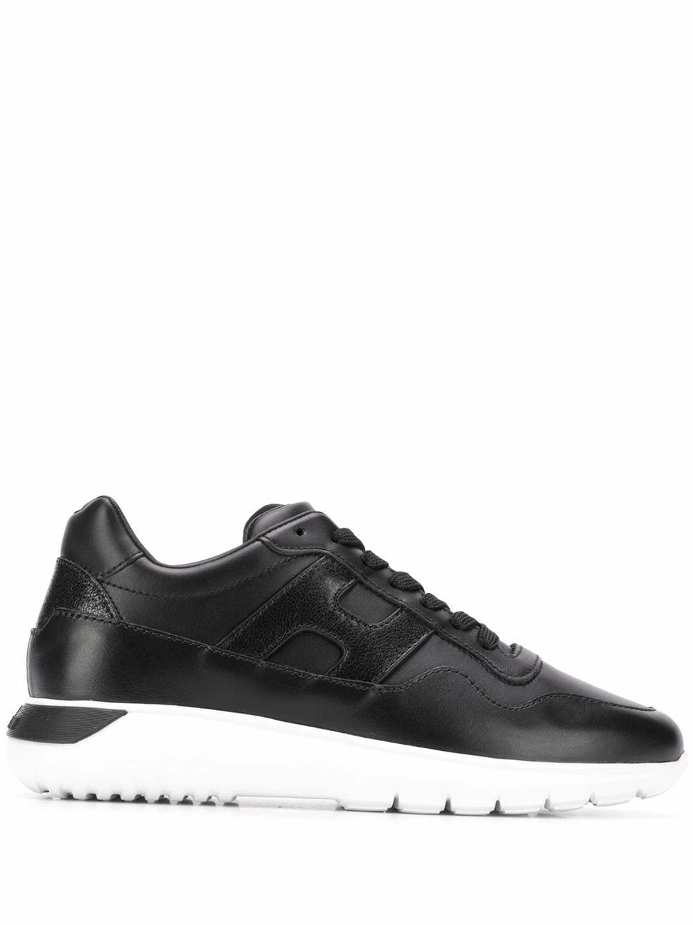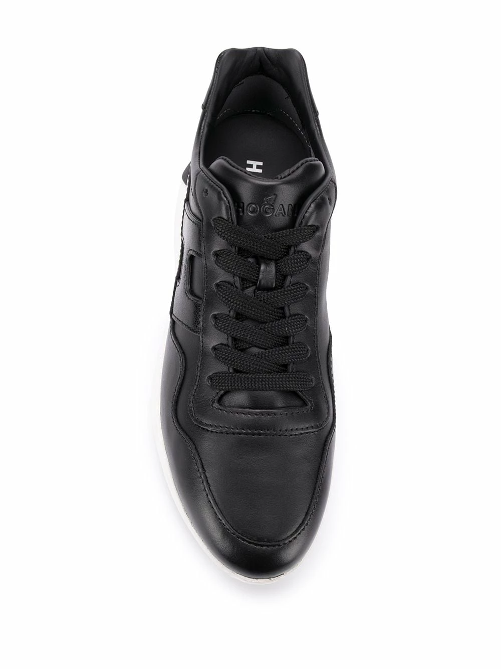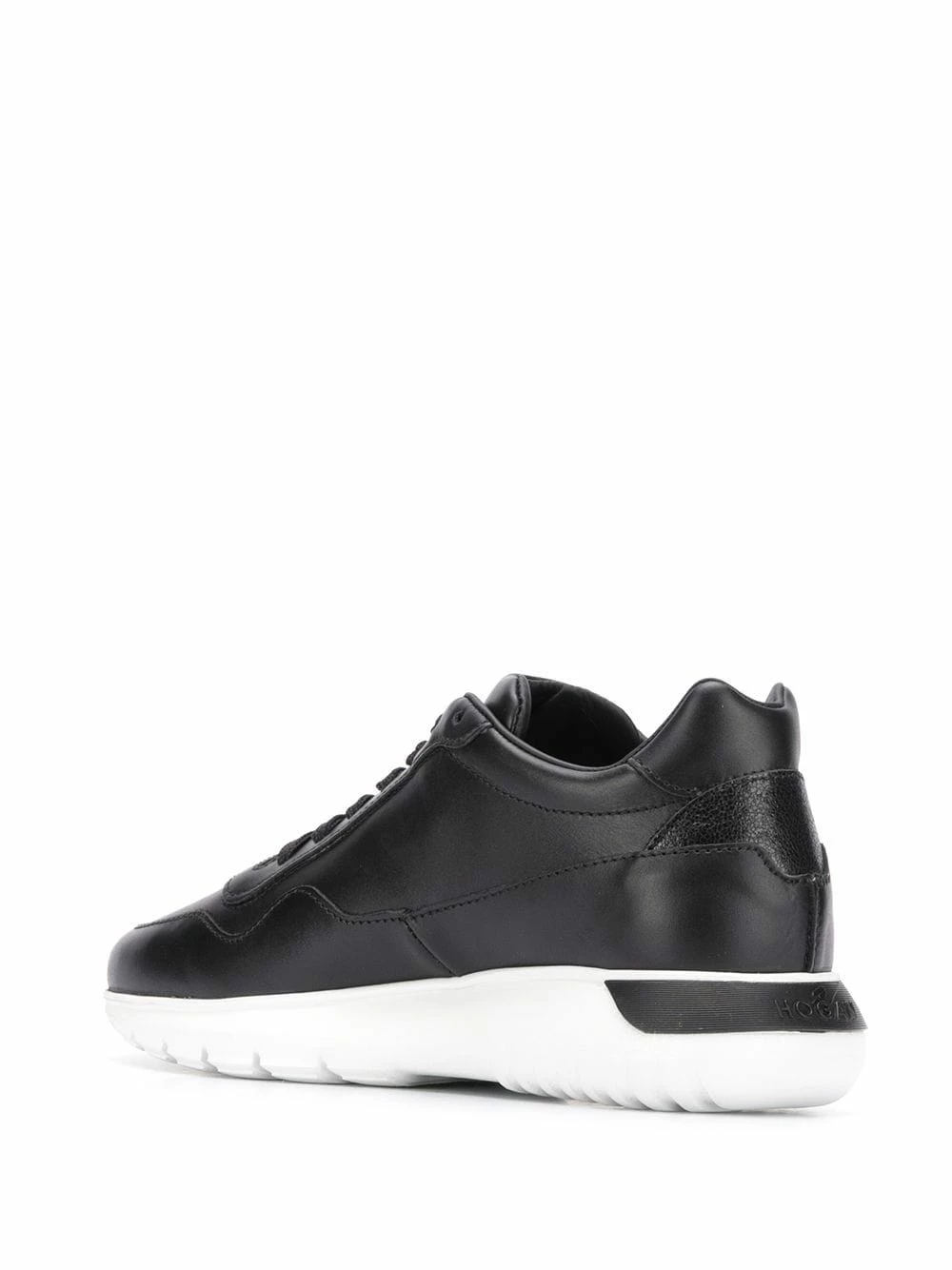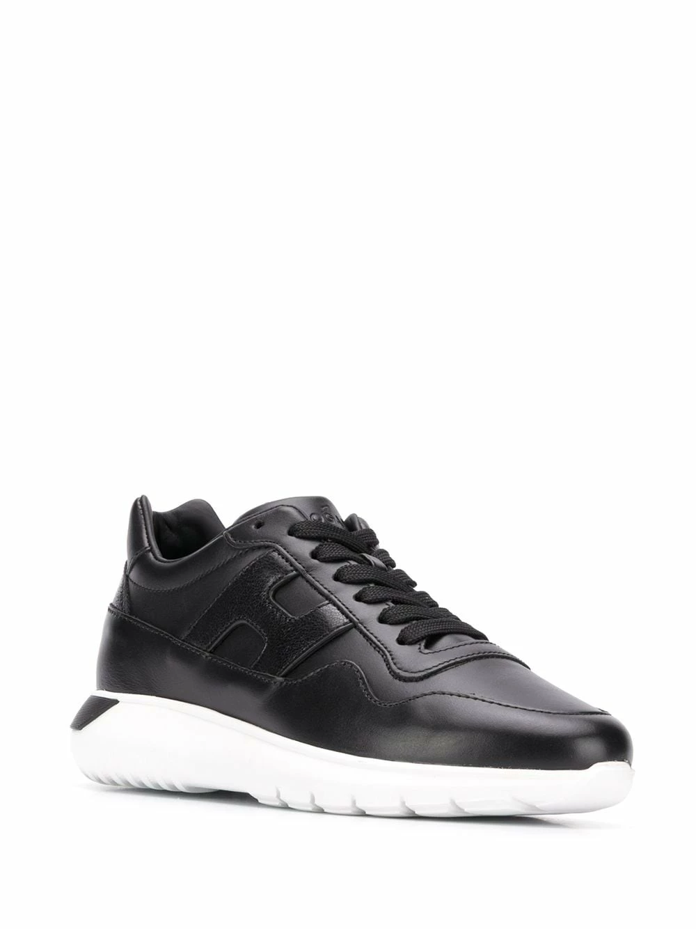 Baskets Interactive 3 en cuir de veau à logo Hogan avec semelle intérieure à logo, semelle en caoutchouc blanc, fermeture à lacer sur le devant et bout rond. Couleur: noir.