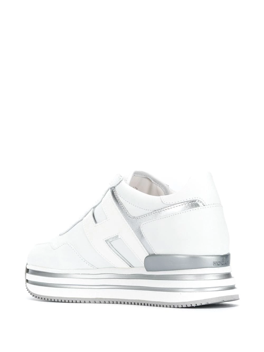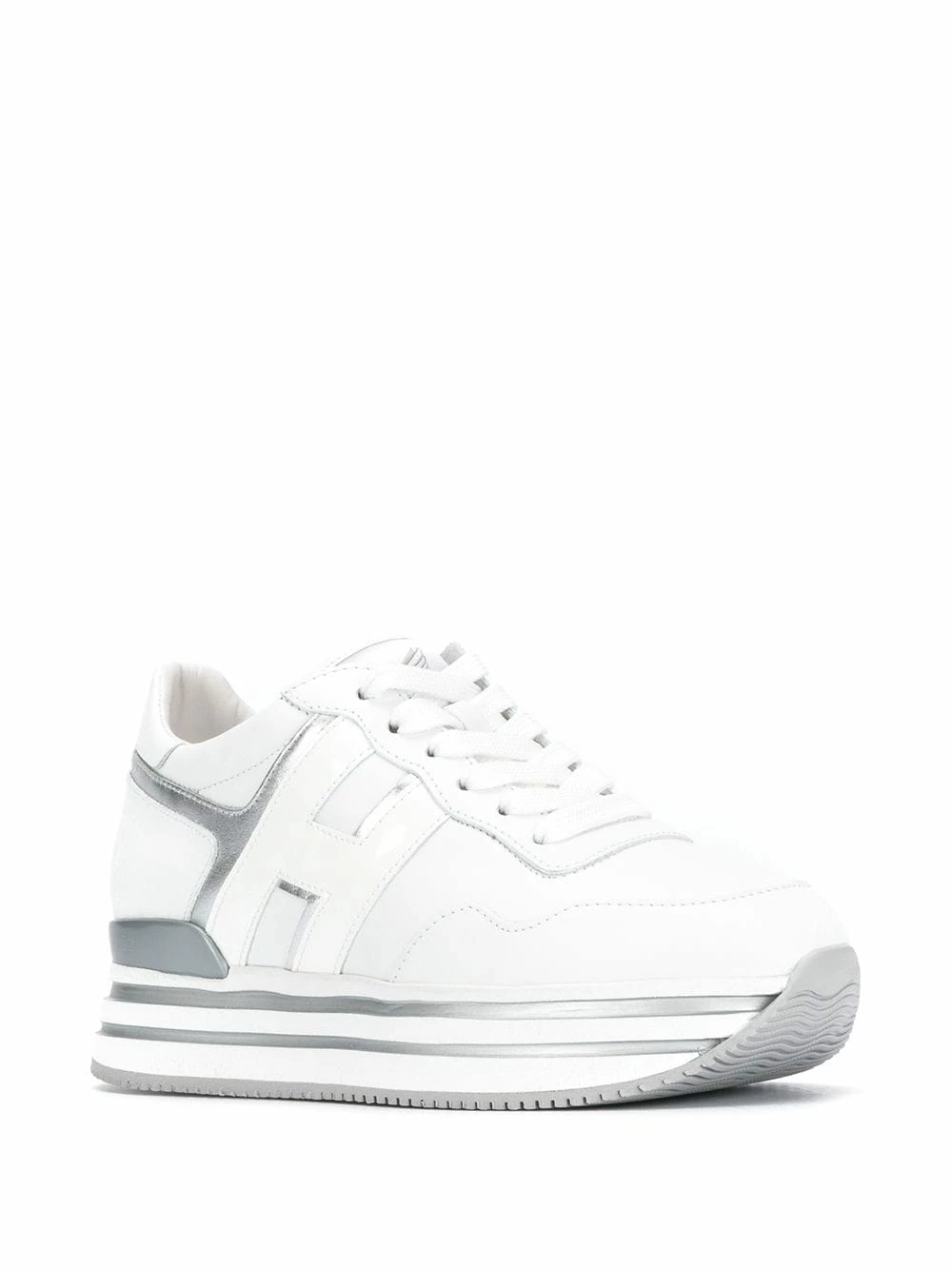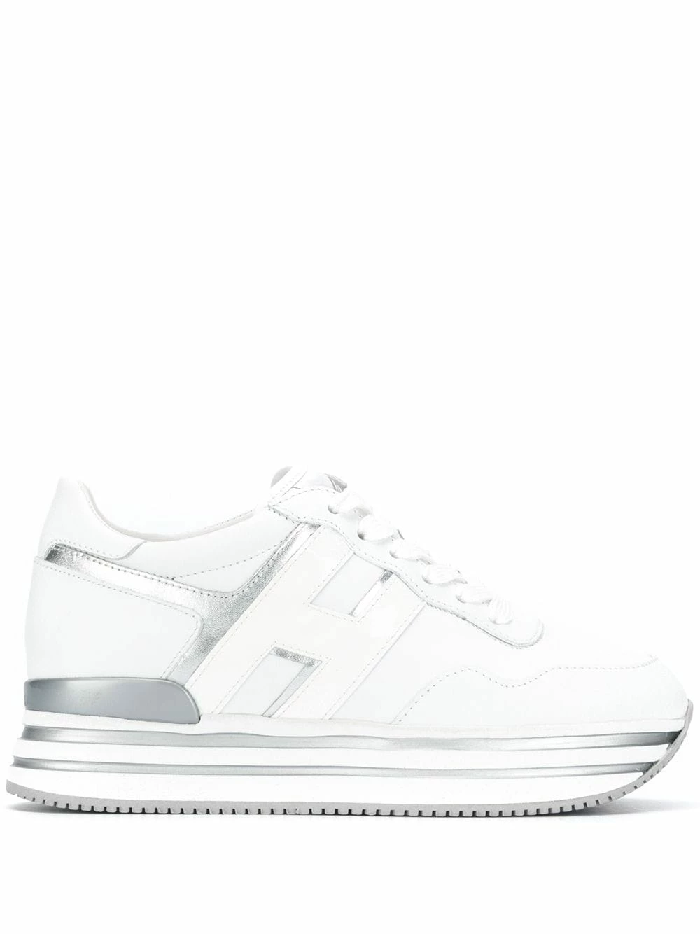 Empiècements contrastants, logo embossé sur le côté, imprimé à rayures, contrefort à logo, languette à patch logo, semelle intérieure à logo, bout rond, fermeture à lacer sur le devant, semelle à plateforme. Matière : cuir.