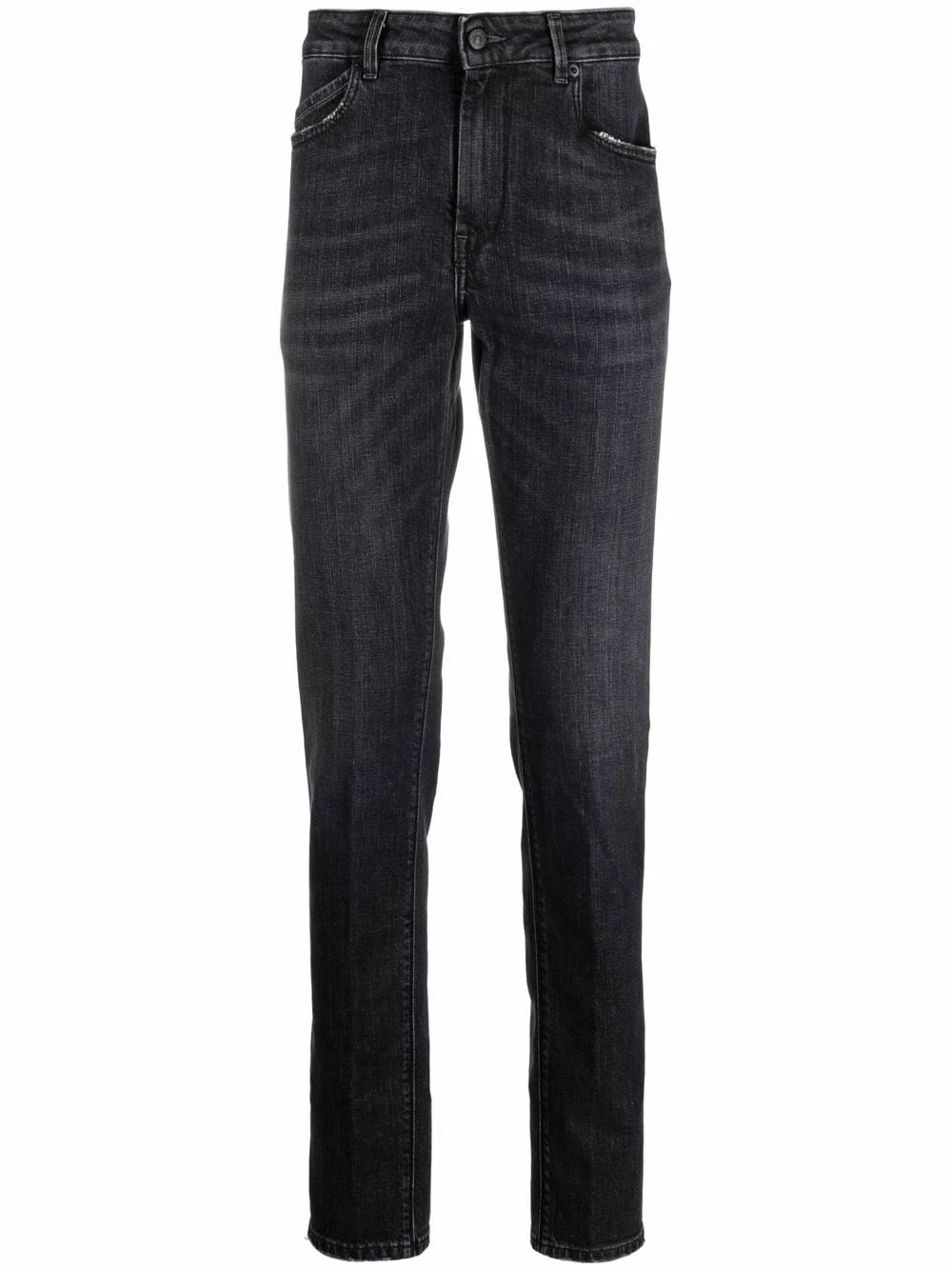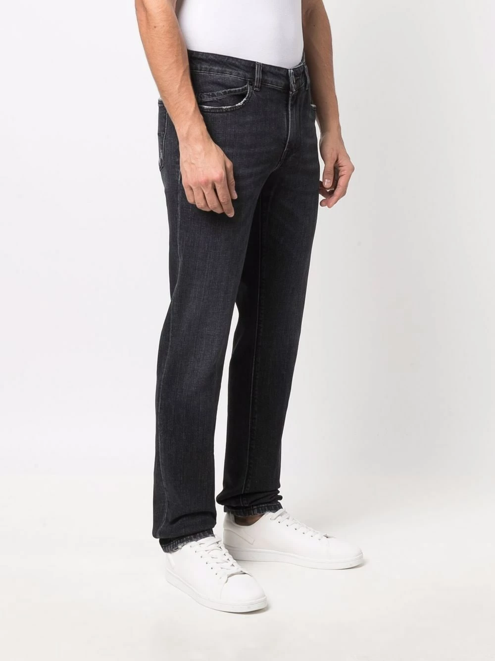 Coupe slim, boutonnière sur le devant, poches latérales fendues, poches arrière plaquées.