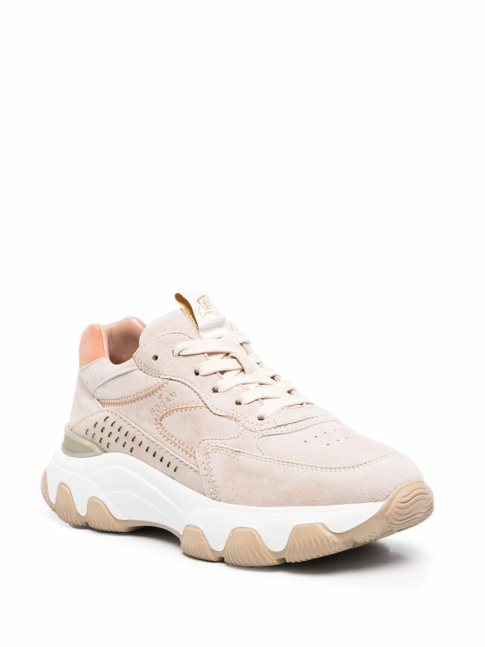 Détails de perforations, bout rond, fermeture à lacer sur le devant, languette à patch logo, contrefort contrastant, semelle crantée en caoutchouc. Matière : cuir.