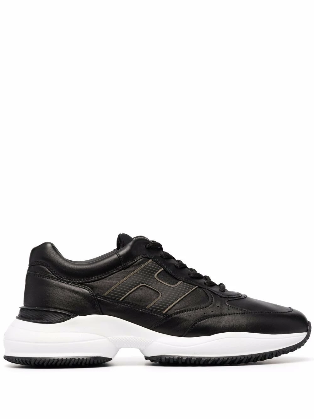 Patch logo sur le côté, bout rond, fermeture à lacer sur le devant, semelle intérieure à logo, semelle plate en caoutchouc. Couleur : noir. Matière : cuir.