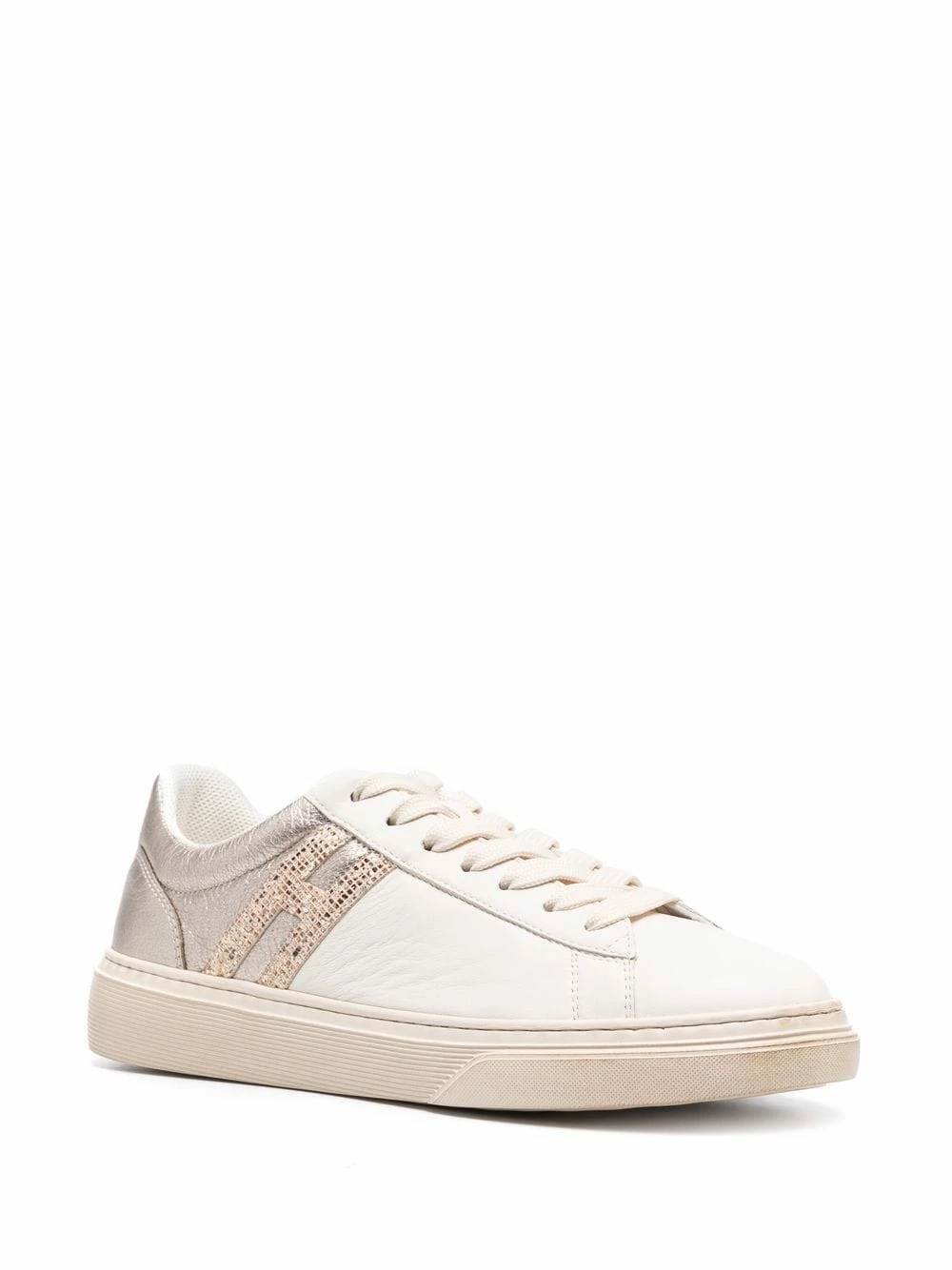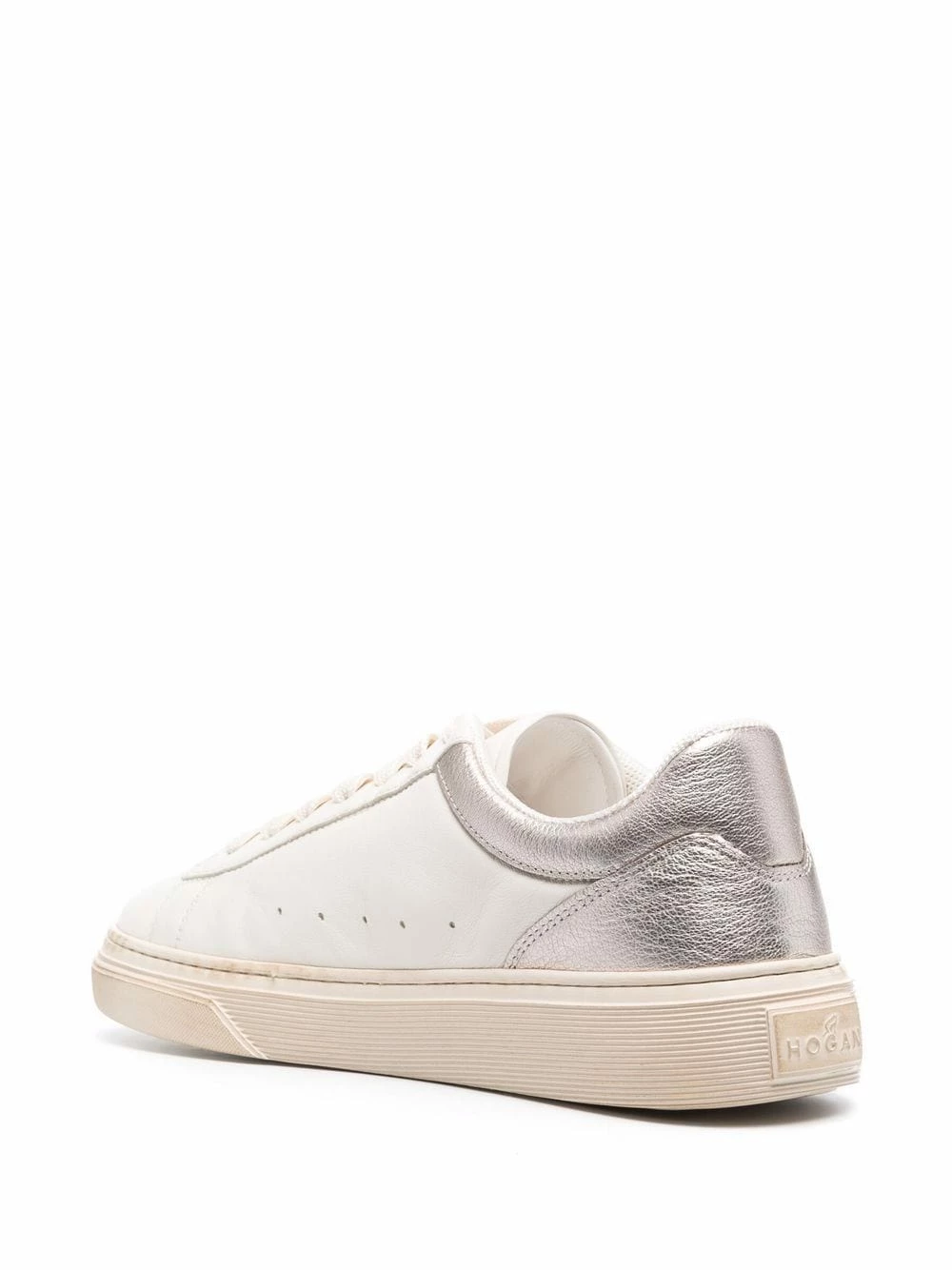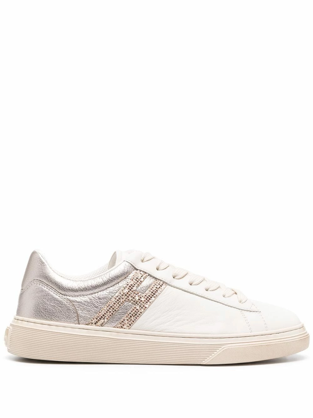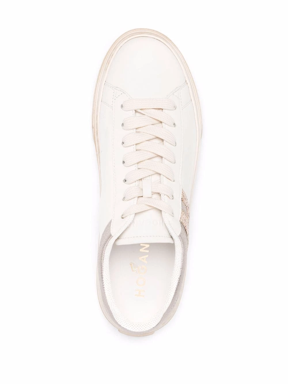 Patch logo sur le côté, languette à logo embossé, empiècements contrastants, détail pailleté, semelle intérieure à logo, bout rond, fermeture à lacer sur le devant, semelle plate en caoutchouc. Couleur : blanc. Matière : cuir de veau.